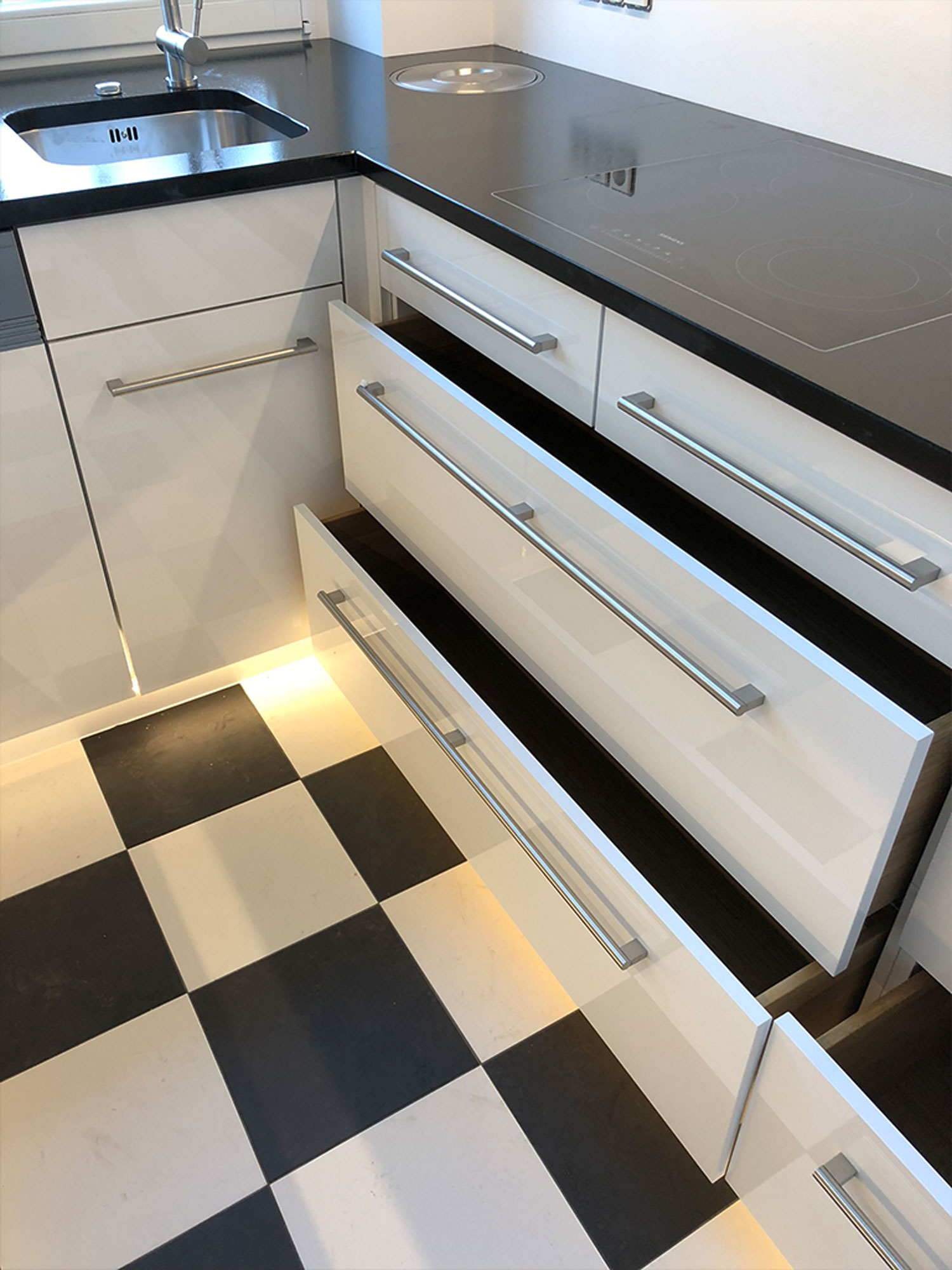 Arrangement gelingt uns selbst auf engstem Raum, eine Küche mit viel Platz zu gestalten, bei der auch ambitionierte
